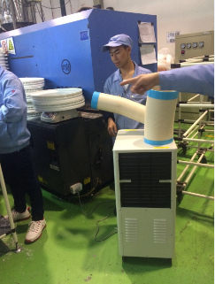 解决方案:使用公司SAC-25D移动冷气机机型,针对高温岗位进行局部降温,改善工人工作环境,避免夏季中暑现象。