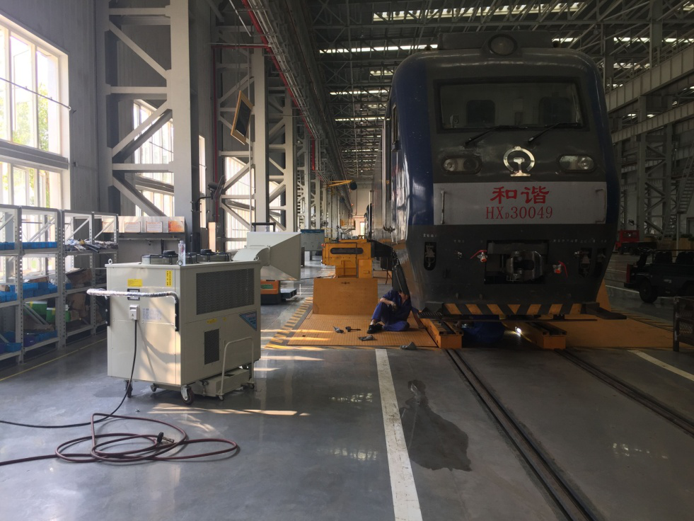 客户诉求: 火车头内部检修时机车必须断电,内部空调无法启动,所有降温设备都不能再内部使用,加上机车头内部空间小,相对密封,内部局域温度可以达到40度以上,严重影响工人工作效率,并引发了多起中暑事故。